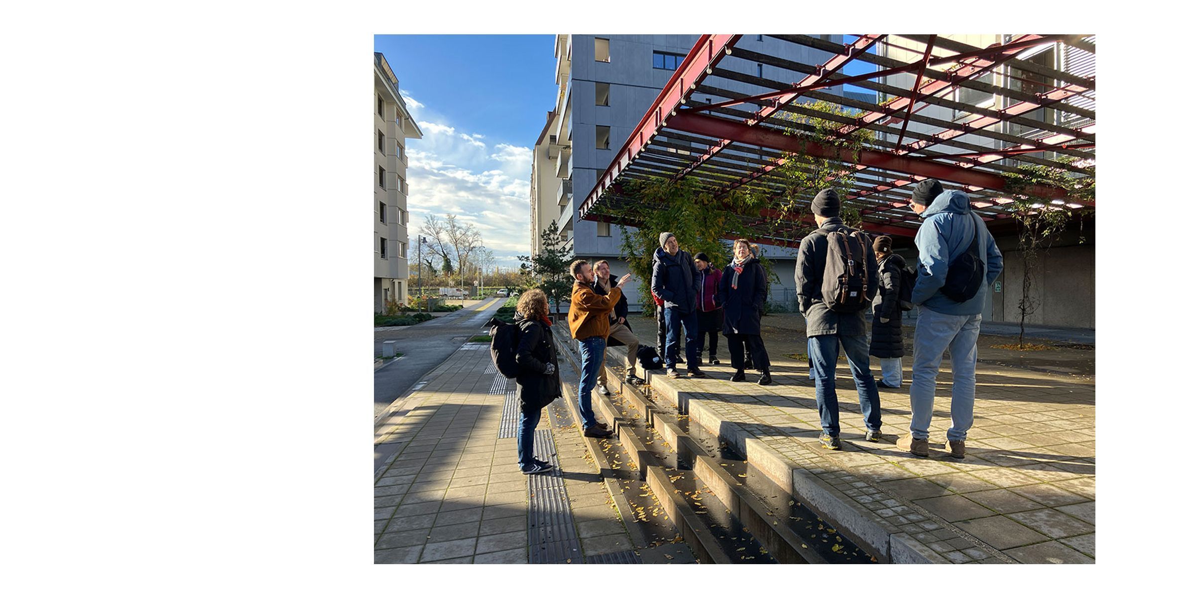Am 17. November sind wir gemeinsam mit der RegioBW und der Straßenbahn nach Straßburg gefahren, um einen inspirierenden und teilweise sonnigen Tag dort zu verbringen. Es war nicht unser erster Besuch, doch die Stadt hat sich erneut stark weiterentwickelt: Vor Ort wurden wir im Teilgebiet Starcoop der ehemaligen Hafengebietsentwicklung von Dominik Neidlinger (ENSAS) und Benjamin Pellegrin (SPL deux-rives) auf den neuesten Stand gebracht. Sie gewährten uns auch geheimnisvolle und einzigartige Einblicke in den Gebäudebestand. Besonders beeindruckt hat uns das Durchhaltevermögen und der durchdachte Umgang mit dem Bestand sowie die Flexibilität, neue Entwicklungen in den Masterplan zu integrieren.